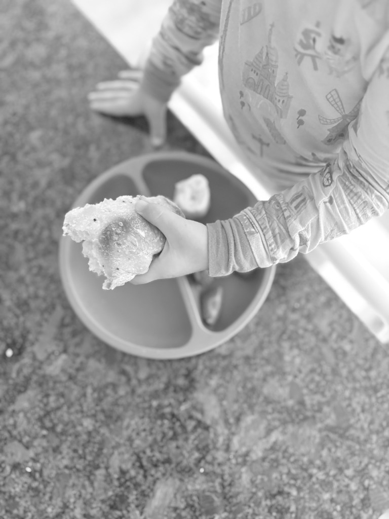I thought bread was going to be so complicated and time consuming, but it is so simple once you’re in routine with it. And this is the ultimate way to have happy family members wake up in the morning. My daughter literally runs out of her room shouting, “BRRRRRRRREEEAD!”, when she smells a baking loaf or hears the oven heating. We have grown accustomed to a warm, fresh piece of toast with sausage and eggs and fruit for breakfast. It’s a nourishing way to just give your family a hug by the food that you prepare.
